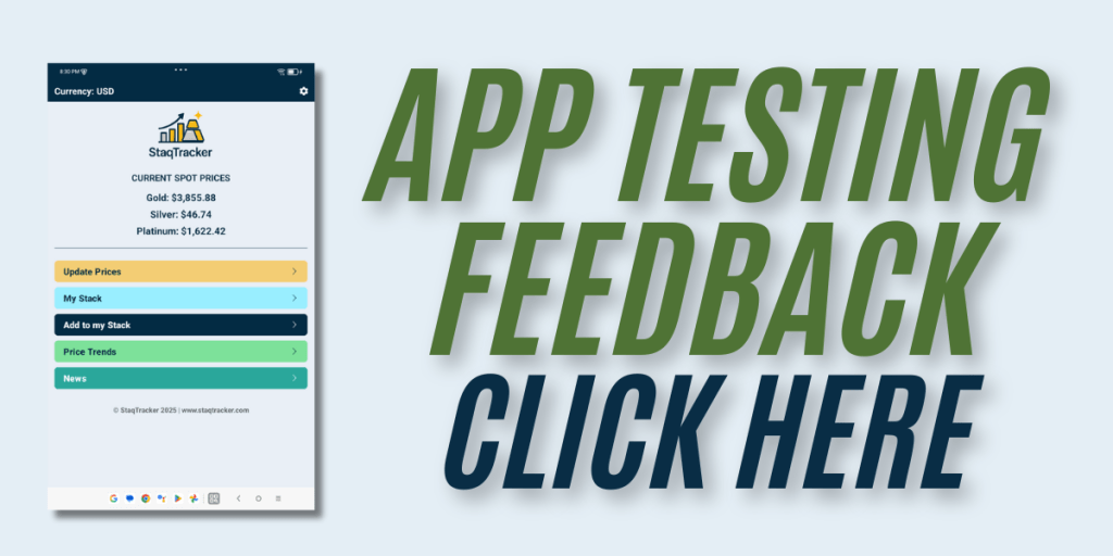 Track your portfolio in real time with live spot prices. Watch your bullion stack grow. See trends and ratios at a glance, and get the insights you need to buy and sell at the right time. Track your gold, silver, and platinum holdings in real time.